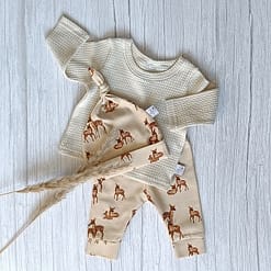 Cuffed Legging Hertjes uit de collectie van ByTasha Exclusive. Deze legging is van heerlijk zachte jersey, valt skinny (ook wel skinny broekje genoemd) en draagt prettig voor jouw kleintje. Het model heeft een elastische tailleband (deze is vanaf maat 86 voorzien van een elastiek zodat het broekje niet af zakt) en boordjes waardoor deze lekker boven de voetjes blijft. De stof blijft mooi na het wassen. Je kunt de legging combineren met diverse van onze andere kledingstukken uit de collectie. Varieer zoveel als je wilt! De Cuffed Legging Hertjes is ook in andere prints en kleuren verkrijgbaar.