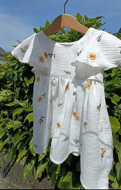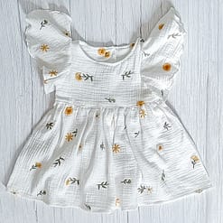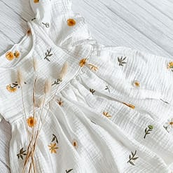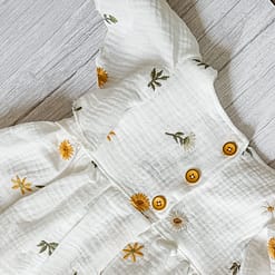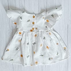 Hydrofiel Jurk Embroidery Flower uit de collectie van ByTasha Exclusive. Deze jurk is van heerlijk zachte double gauze, perfect voor de zomer en draagt prettig voor jouw kleintje. De jurk heeft een knoopsluiting op de rug en mooie flounce mouwen. De jurk heeft een mooie geborduurde details waardoor dit kledingstuk een musthave voor in de kledingkast is. De stof blijft mooi na het wassen. Je kunt de jurk combineren met diverse van onze andere kledingstukken uit de collectie. Varieer zoveel als je wilt! De Hydrofiel Jurk Embroidery Flower is ook in andere prints en kleuren verkrijgbaar.