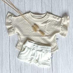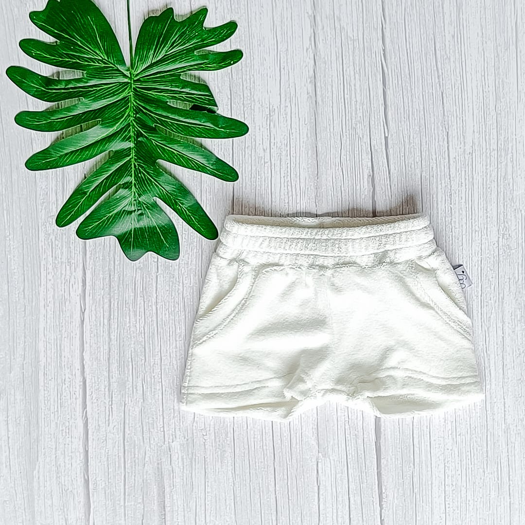 Jogger Short Badstof Ecru uit de collectie van ByTasha Exclusive. Dit broekje is van heerlijk zachte badstof tricot stof en draagt prettig voor jouw kleintje. Het broekje heeft een mooie uni kleur waardoor dit kledingstuk een musthave voor in de kledingkast is. Het model heeft een doorgestikte elastische tailleband met elastiek en is voorzien van zakken. De stof blijft mooi na het wassen. Je kunt het broekje combineren met diverse van onze andere kledingstukken uit de collectie. Varieer zoveel als je wilt!
