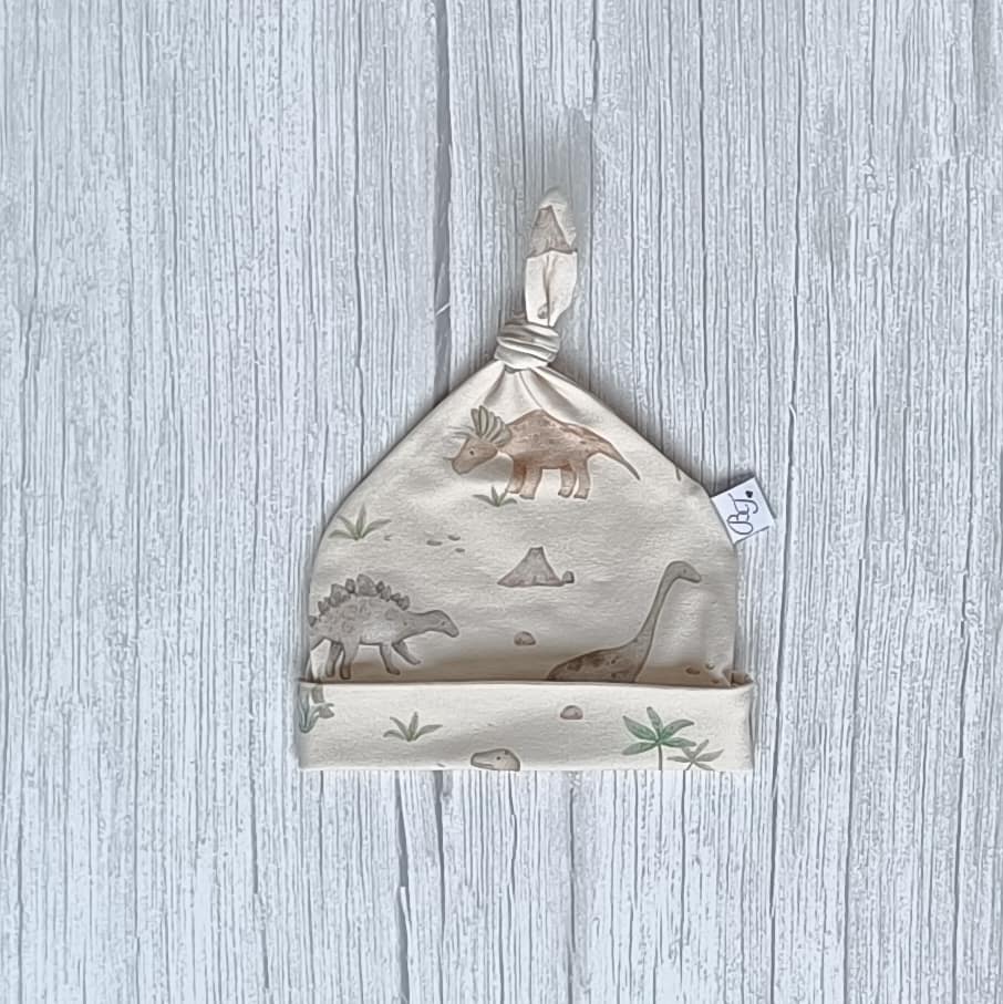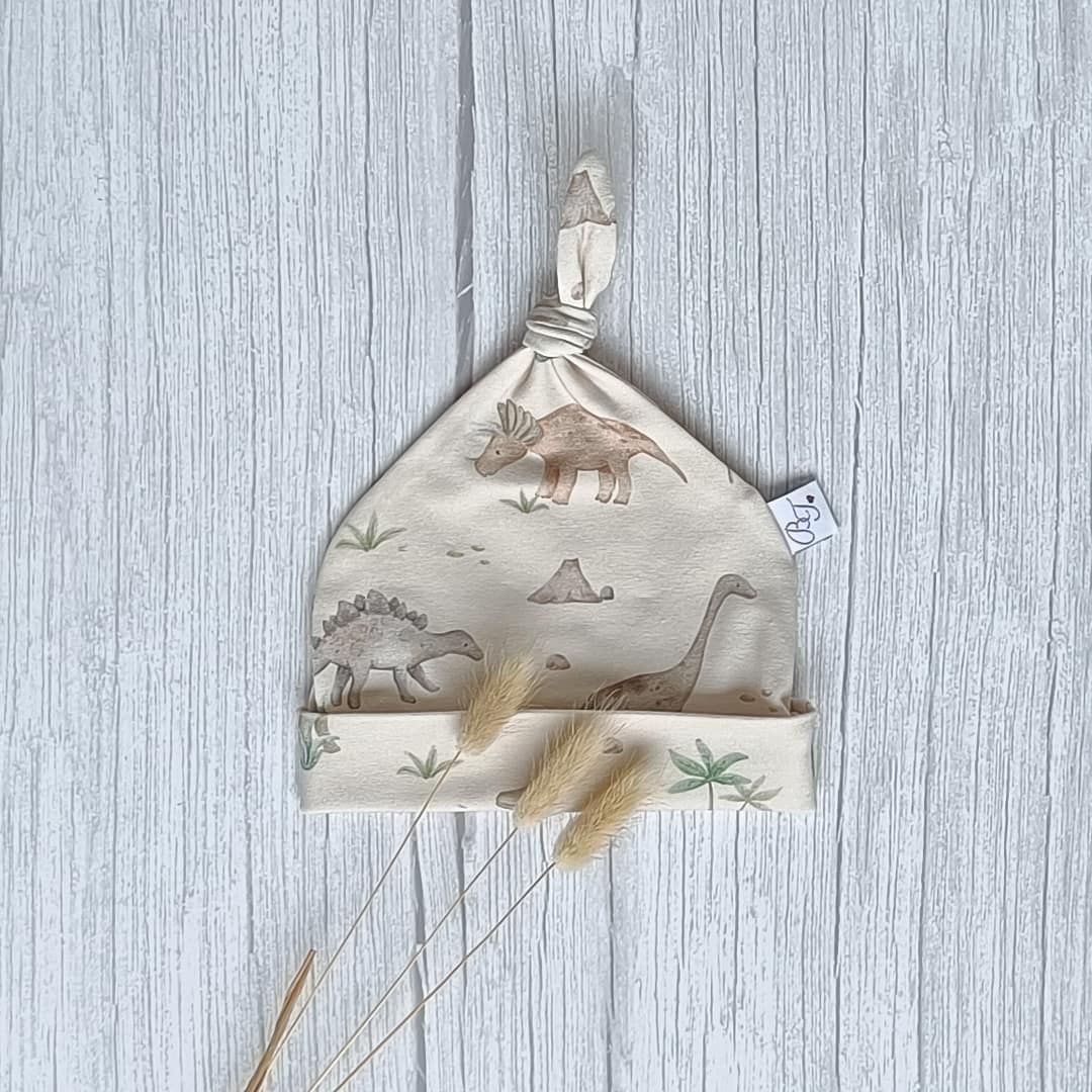 Knoopmuts Dino uit de collectie van ByTasha Exclusive. Deze print is een exclusief design waarvan deze kleur alleen in ons bezit is en door niemand anders gemaakt en of verkocht wordt. De knoopmuts is ongeveer draagbaar van 0-3 maanden afhankelijk van de hoofdmaat van je kleintje. De knoop kun je zelf verstellen waardoor het mutsje groter of kleiner gemaakt kan worden. Hij is gemaakt van heerlijk zachte tricot en draagt prettig voor jouw kleintje. De knoopmuts heeft een mooie digitale dinosaurus print, waardoor dit kledingstuk een musthave voor in de kledingkast is. De stof blijft mooi na het wassen. Je kunt de knoopmuts combineren met diverse van onze andere kledingstukken uit de collectie. Varieer zoveel als je wilt! De Knoopmuts Dino is ook in andere prints en kleuren verkrijgbaar.