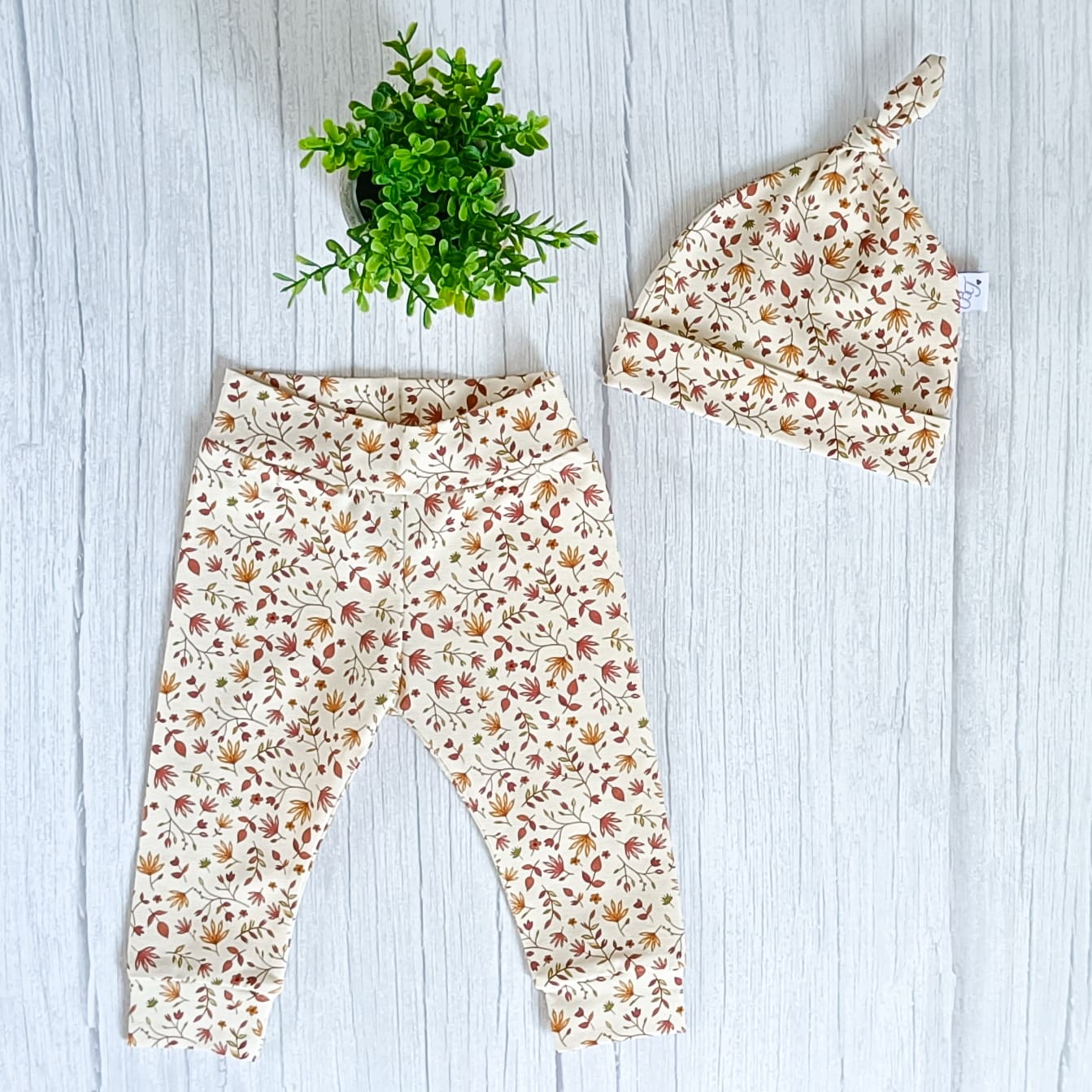 Knoopmuts Kastanjeblad uit de collectie van ByTasha Exclusive. De knoopmuts is ongeveer draagbaar van 0-3 maanden afhankelijk van de hoofdmaat van je kleintje. De knoop kun je zelf verstellen waardoor het mutsje groter of kleiner gemaakt kan worden. Hij is gemaakt van heerlijk zachte tricot en draagt prettig voor jouw kleintje. De knoopmuts heeft een mooie digitale bloemen print, waardoor dit kledingstuk een musthave voor in de kledingkast is. De stof blijft mooi na het wassen. Je kunt de knoopmuts combineren met diverse van onze andere kledingstukken uit de collectie. Varieer zoveel als je wilt! De Knoopmuts Kastanjeblad is ook in andere prints en kleuren verkrijgbaar.