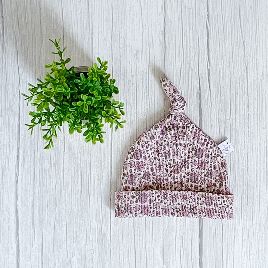 Knoopmuts Rib Jersey Paarse Bloemetjes uit de collectie van ByTasha Exclusive. De knoopmuts is ongeveer draagbaar van 0-3 maanden afhankelijk van de hoofdmaat van je kleintje. De knoop kun je zelf verstellen waardoor het mutsje groter of kleiner gemaakt kan worden. Hij is gemaakt van heerlijk zachte tricot en draagt prettig voor jouw kleintje. De knoopmuts heeft een mooie bloemen print met rib structuur, waardoor dit kledingstuk een musthave voor in de kledingkast is. De stof blijft mooi na het wassen. Je kunt de knoopmuts combineren met diverse van onze andere kledingstukken uit de collectie. Varieer zoveel als je wilt! De Knoopmuts Rib Jersey Paarse Bloemetjes is ook in andere prints en kleuren verkrijgbaar.