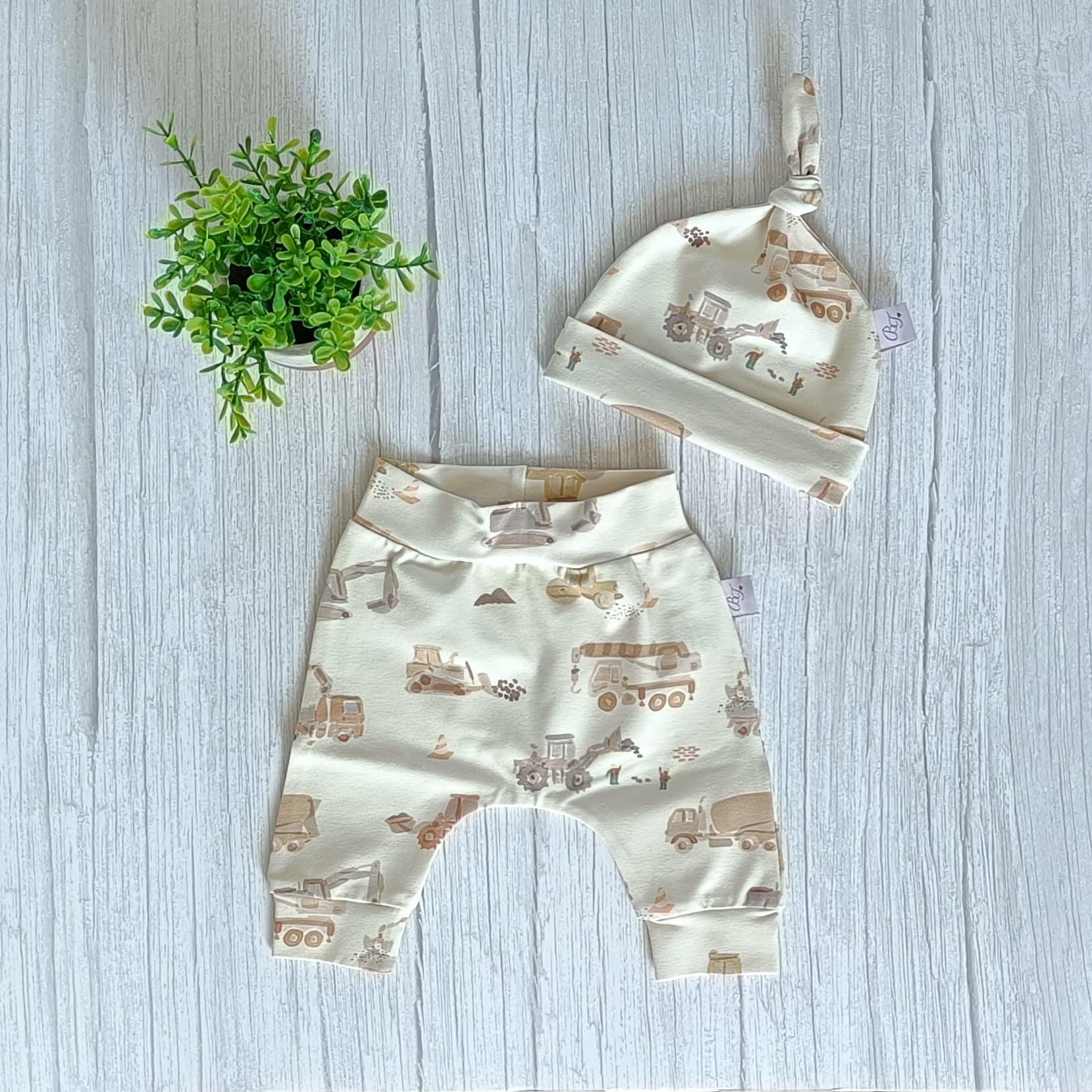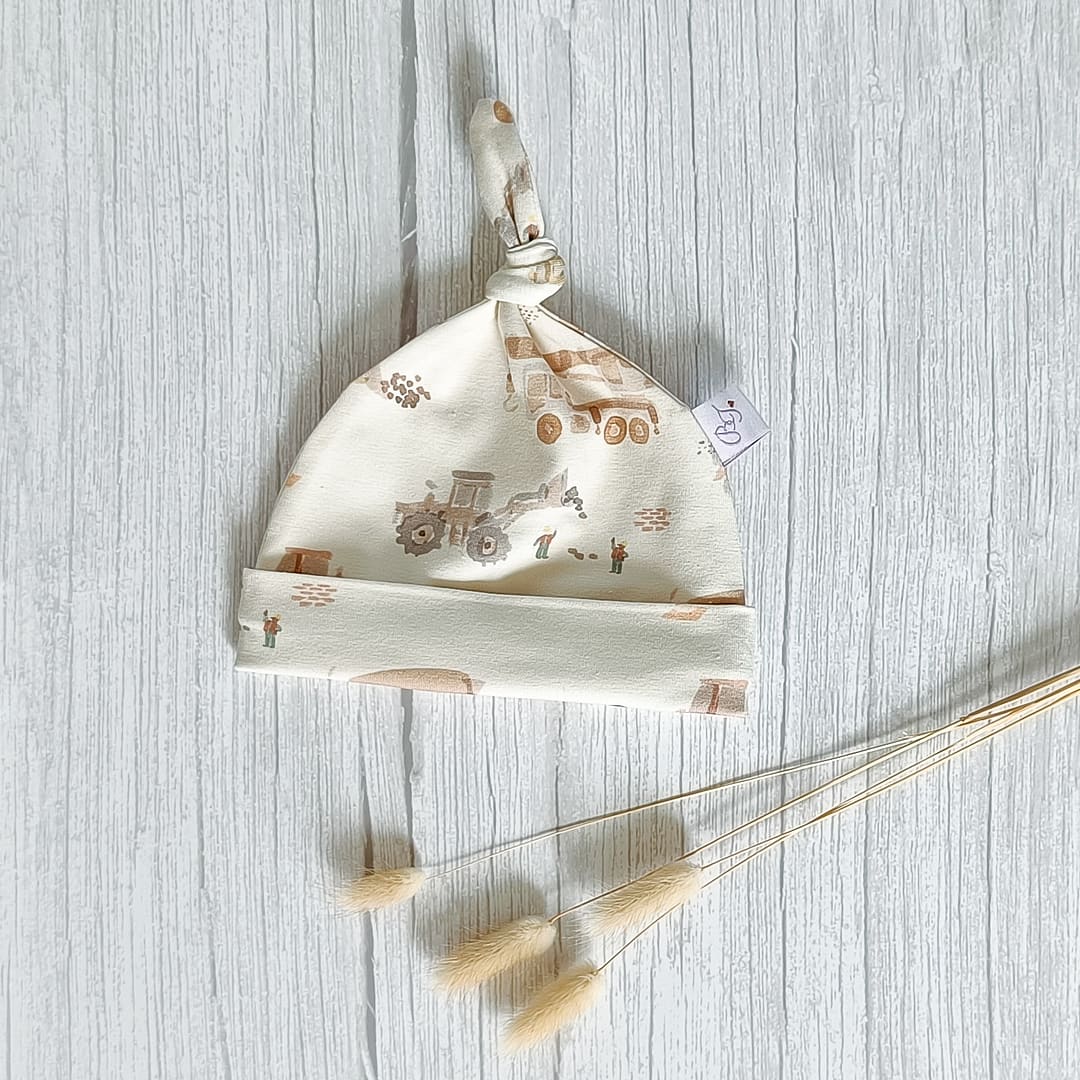 Knoopmuts Werkvoertuigen uit de collectie van ByTasha Exclusive. De knoopmuts is ongeveer draagbaar van 0-3 maanden afhankelijk van de hoofdmaat van je kleintje. De knoop kun je zelf verstellen waardoor het mutsje groter of kleiner gemaakt kan worden. Hij is gemaakt van heerlijk zachte tricot en draagt prettig voor jouw kleintje. De knoopmuts heeft een mooie digitale werkvoertuigen print, waardoor dit kledingstuk een musthave voor in de kledingkast is. De stof blijft mooi na het wassen. Je kunt de knoopmuts combineren met diverse van onze andere kledingstukken uit de collectie. Varieer zoveel als je wilt! De Knoopmuts Werkvoertuigen is ook in andere prints en kleuren verkrijgbaar.