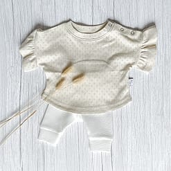 Prematuur Legging Ottoman Rib Ecru uit de collectie van ByTasha Exclusive. Deze legging is van heerlijk zachte rib jersey, valt skinny (ook wel skinny broekje genoemd) en draagt prettig voor jouw kleintje. Het model heeft een elastische tailleband (zonder elastiek) en boordjes waardoor deze lekker boven de voetjes blijft. De stof blijft mooi na het wassen. Je kunt de legging combineren met diverse van onze andere kledingstukken uit de collectie. Varieer zoveel als je wilt! De Prematuur Legging Ottoman Rib Ecru is ook in andere prints en kleuren verkrijgbaar.