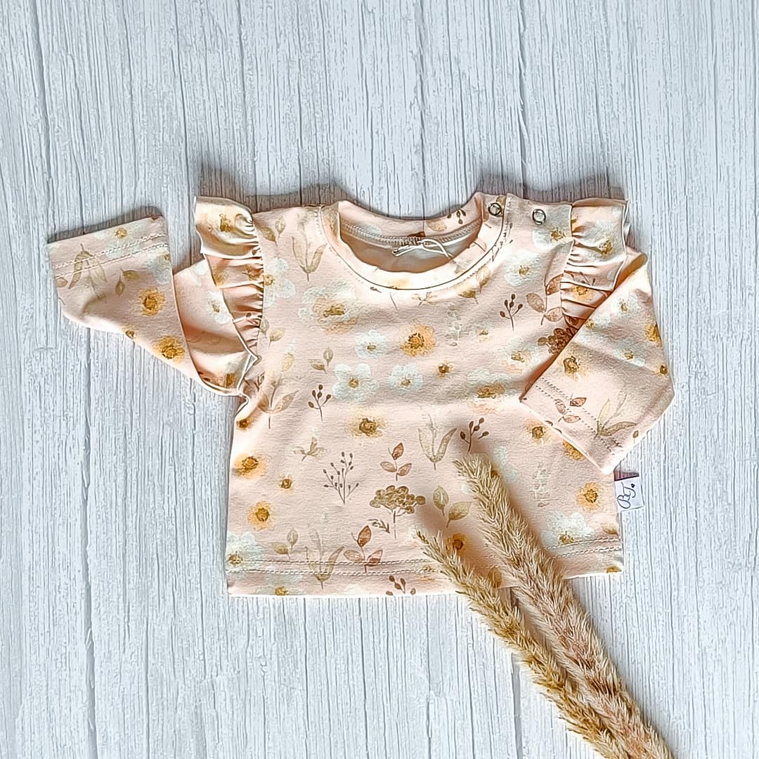 Prematuur Ruffle Longsleeve Wildflower Peach, met drukknopen op de schouder, uit de collectie van ByTasha Exclusive. Deze print is een exclusief design waarvan deze kleur alleen in ons bezit is en door niemand anders gemaakt en of verkocht wordt. De longsleeve heeft een passende fit en valt op maat, voorzien van ruffles op de schouders. Het shirt is gemaakt van heerlijk zachte tricot en draagt prettig voor jouw kleintje. De longsleeve heeft een mooie digitale bloemen print, waardoor dit kledingstuk een musthave voor in de kledingkast is. De stof blijft mooi na het wassen. Je kunt de longsleeve combineren met diverse van onze andere kledingstukken uit de collectie. Varieer zoveel als je wilt! De Prematuur Ruffle Longsleeve Wildflower Peach is ook in andere prints en kleuren verkrijgbaar. Wil je dit shirt liever zonder ruffles? Dat is natuurlijk ook mogelijk, neem dan even contact met ons op.